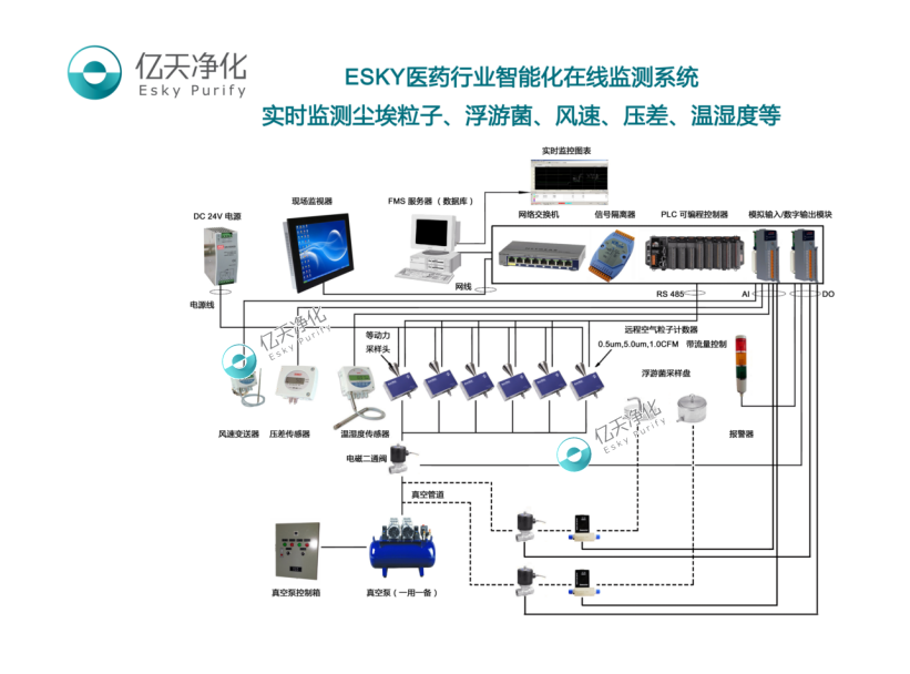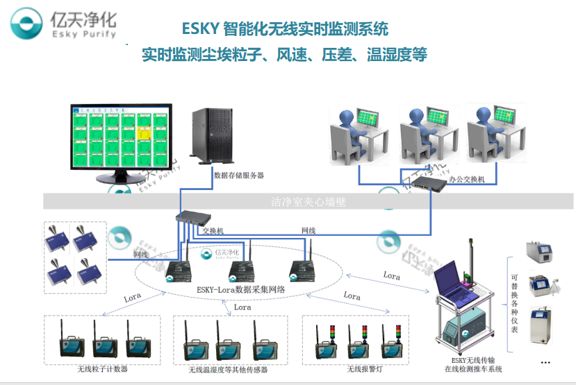 深圳億天凈化提供的ESKY智能化無線實時監(jiān)測系統(tǒng)以其安裝方便、靈活性強、性價比高等特性,使得更多企業(yè)用戶采用無線監(jiān)測方式,省去網(wǎng)絡布線,降低施工難度,節(jié)約施工時間。