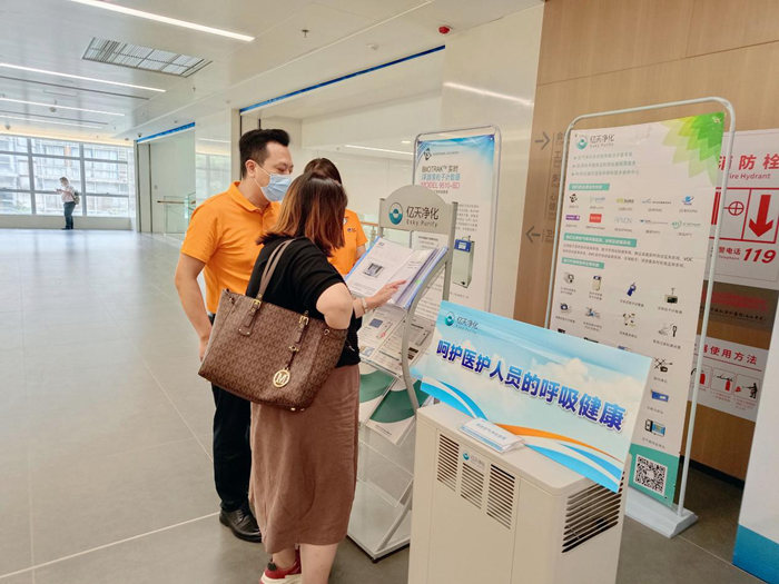 為保持潔凈空氣,呵護醫護人員的呼吸健康億天凈化在設立的展位上展出了智能空氣凈化裝置、環境檢測儀器等產品,向專家學者、行業大咖展示億天凈化創新領先的技術產品和扎實優秀的落地經驗。