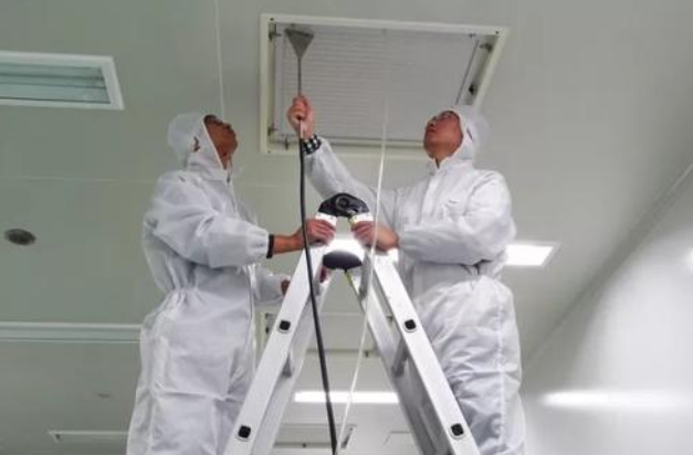 測試完畢后,將采樣塑料管端口接到塵埃粒子計數(shù)器后面板上進行自檢。然后關(guān)閉電源。用塵埃粒子計數(shù)器測定百級潔凈區(qū)高效過濾器結(jié)果。通過以上測定就可以看出高效過濾器是否有泄漏現(xiàn)象。是否需進行堵漏或更換,過濾器修理或更換后必須重新進行測試。